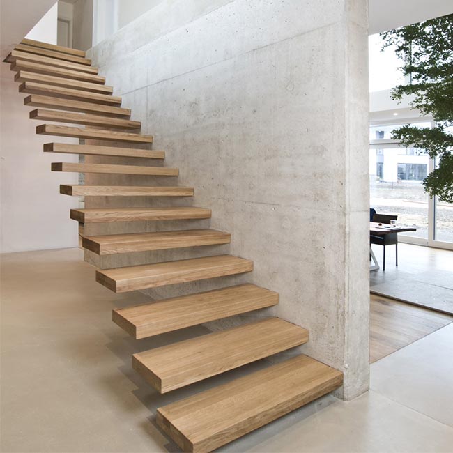 • Description: Factory made floating straight stairs central spine stair middle stringer staircase with wood tread and frameless glass railing.