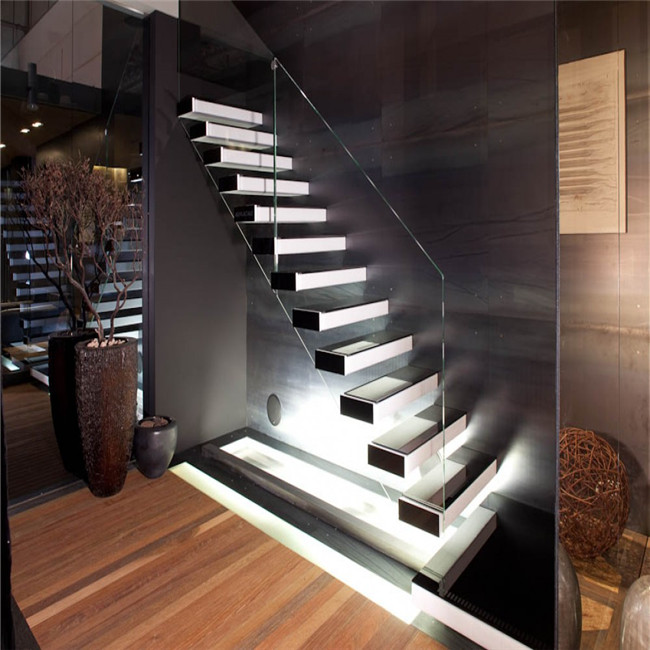 Frameless Terrace Glass Steel Straight Staircase For Indoor