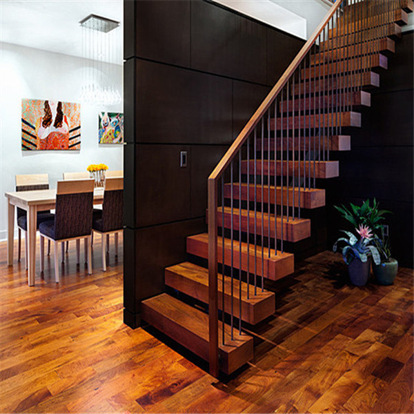 • Glass railing solid wood steps build indoor staircase floating stairs