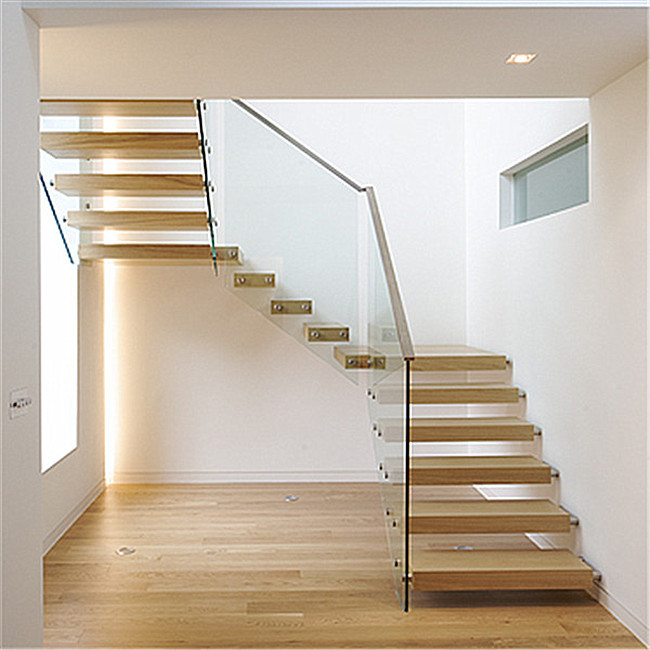 • Hot selling glass railing solid wood steps build indoor staircase floating stairs