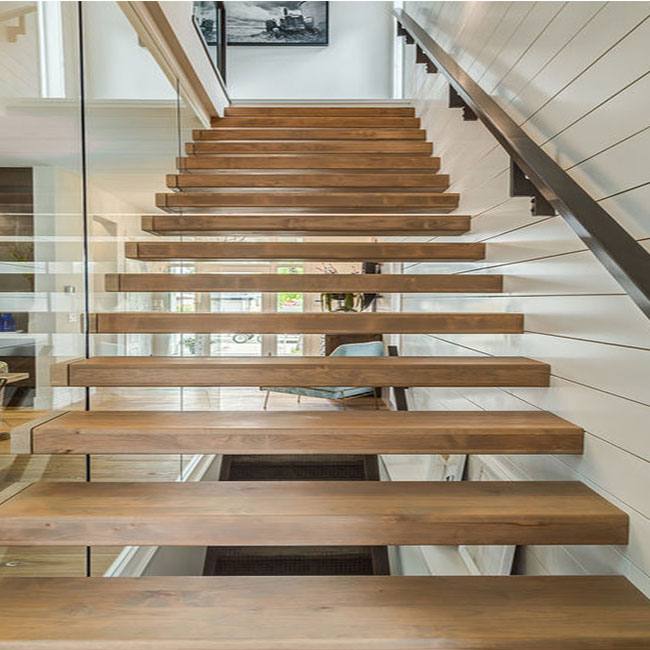 • Description: Factory made floating timber steps stairs,floating straight stairs,stainless steel glass staircase.