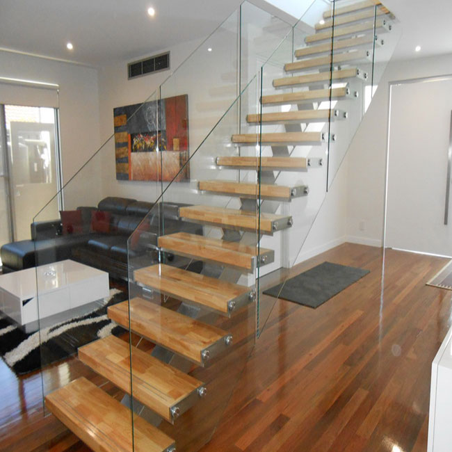 Modern stair floating straight stairs Interior staircase with Wood Tread and Glass Railing