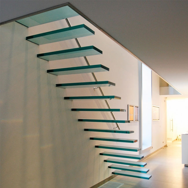 Mono stringer frameless glass floating staircase steps railings stairc indoor stair step lights