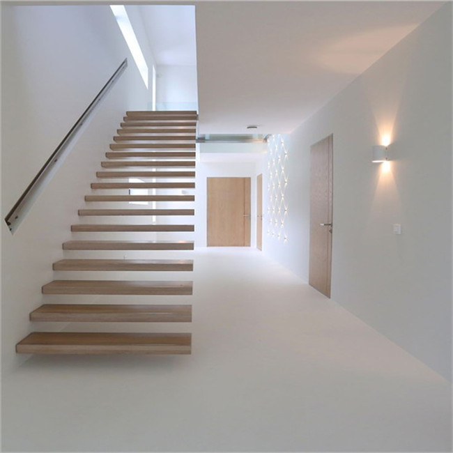 • Description: Factory made customized high quality white floating stairs wood steel wood staircases.
