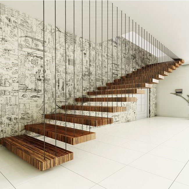 • Description: Factory made wood floating stairs hidden stringer staircases design modern straight staircase.