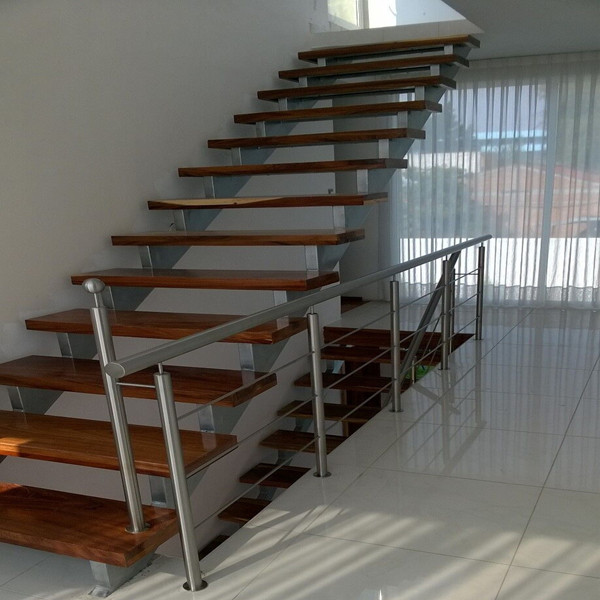 • solid wood staircase steel stringer with steel railing