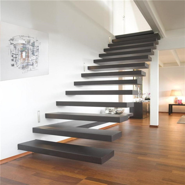 • Description: Factory made high quality white floating stairs wood steel wood staircases.