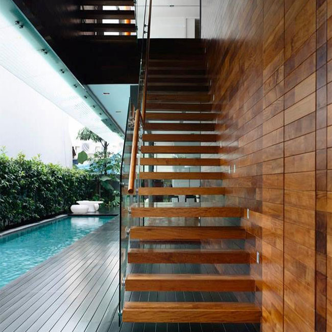 • Description: Factory made floating timber steps stairs,floating straight stairs,stainless steel glass staircase.