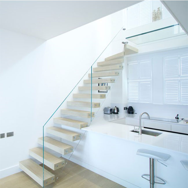 • Description: Factory made wood floating stairs hidden stringer staircases design modern straight staircase.