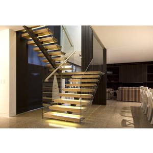 • Description: Lower price Indoor Staircase Design Tempered Glass Railing Wooden Led Lighting Stairs